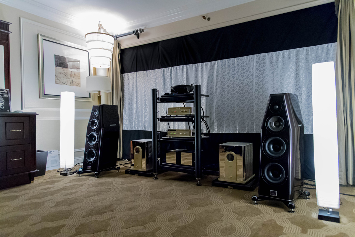 "We've saved perhaps the best until last. Zanden Audio announced the new 3000mk 2 tube preamplifier with transformer coupled inputs and outputs. This $23,000 line preamplifier was being used in a full Zanden analogue only system, with a Grand Prix Audio Monaco 2.0 turntable (with 12” Tri-Planar Ultimate arm and Air Tight PC-1S cartridge) and full Grand Prix Audio Silverstone/Formula shelf and platform system, all into Kharma dB-9S floorstanding loudspeakers. This is not a cheap system (around $250,000 including room treatment and cables) but it was a system of great refinement, depth, clarity, and effortlessness… the perfect thing to set you up for the flight back to London."