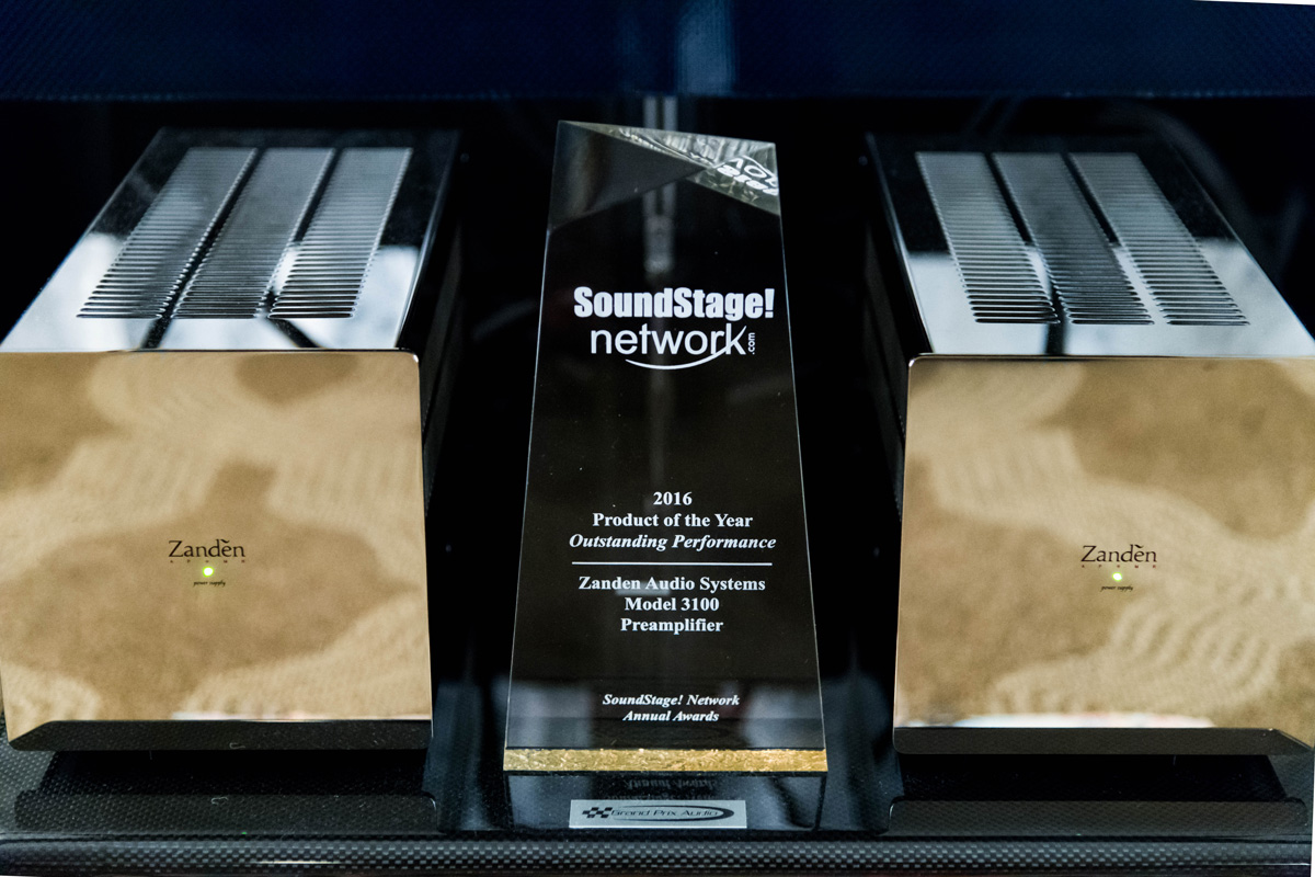 To begin Zanden Audio Systems Model 3100 preamplifier received a Product of the Year Award for Outstanding Performance from Soundstage. Garrett Hongo (SoundStage! Ultra, May 2016) described it as “Attractive, compact, and a sonic wonder, the Zanden 3100 preamp is one of the finest contributions to high-end sound I've ever heard.” The award was presented during the show to Zanden's North American distributor, Eric Pheils. Read the original review here.
